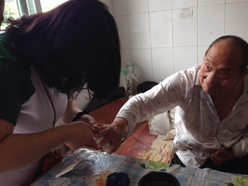 早上八点,由36名大学生组成的志愿者团队准点出发。到达敬老院,老人们十分激动,由于老人行动不便,同学们便进入老人房间近距离和他们聊天沟通,打扫卫生,为老人洗脸、梳头、剪指甲,一边和老人们谈心一边为老人捶肩揉背,气氛十分温馨融洽。稍作休息后,同学们开始了文艺表演,革命歌曲合唱、经典老歌独唱、民族器乐合奏、歌伴舞、相声等精彩纷呈的节目令老人们拍手称赞,笑得合不拢嘴。表演结束后,志愿者们小心翼翼的把老人们扶回房间,并悉心照料,平日里寂静的老年公寓一下子热闹起来。