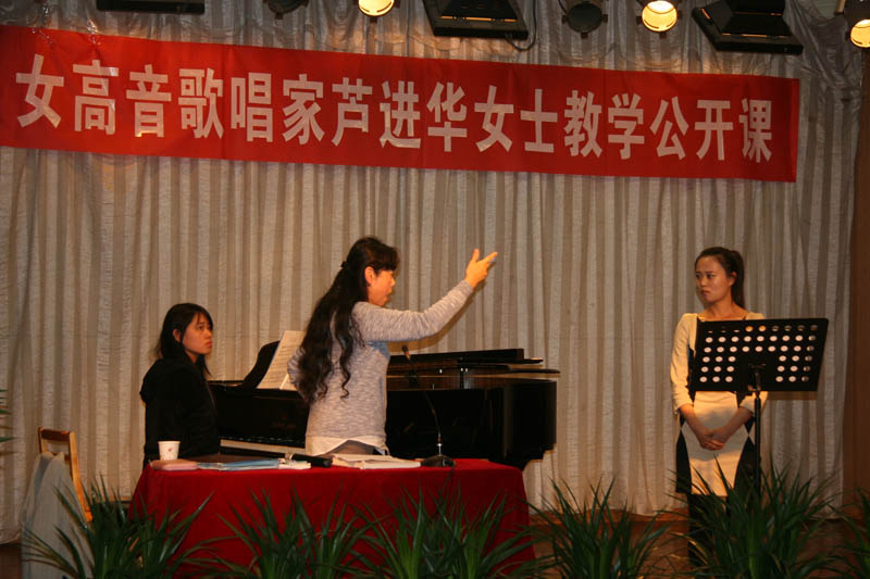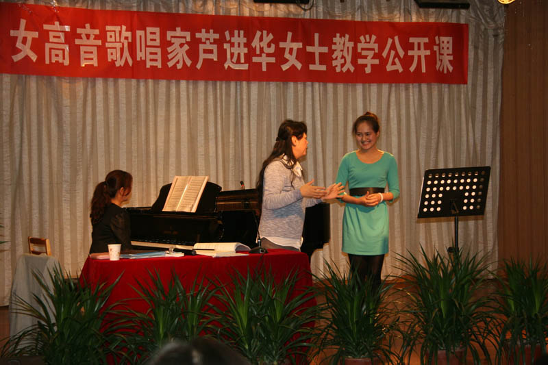 2014年4月23日上午9时,旅欧女高音歌唱家芦进华女士来新葡京进行声乐讲座及教学公开课。张君仁院长为本次学术交流活动致辞,热情欢迎芦老师作为3003新葡官方网站的创始校友,在25年后重访母校与广大师生分享丰富的旅欧音乐艺术历程。