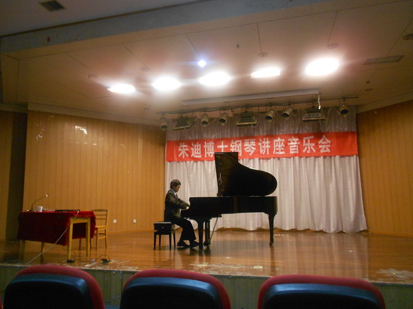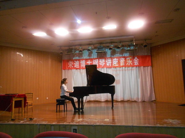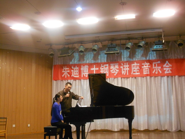 朱迪博士在讲座之前,分别给新葡京的2011级钢琴硕士研究生熊潇莹和2012级钢琴研究生王雨果进行了公开课,从技术及情绪处理等方面做了详细的讲解辅导,使学生受益匪浅。