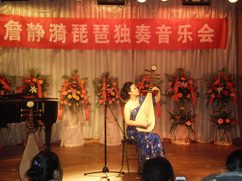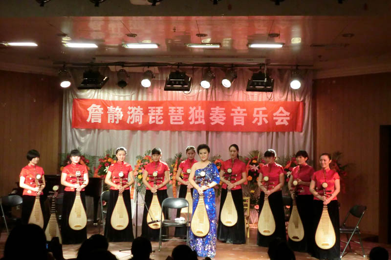本场音乐会詹静漪老师先后演奏了具有浓郁新疆特色的《送我一只玫瑰花》,钢琴与手鼓的伴奏,使乐曲更富有表现力,赢得阵阵掌声,之后的《塞上曲》哀怨惆怅,琵琶与古筝二重奏《春江花月夜》诗意盎然,引人入胜。琵琶协奏曲《祝福》曲由著名作曲家赵季平先生创作,取材于鲁迅同名小说。表现出了对旧社会劳苦大众的同情以及对旧制度的有力控诉,旋律委婉感人,催人泪下。结束曲詹静漪老师与学生合奏琵琶经典武曲《十面埋伏》,气势恢宏,艺术形象鲜明,激动人心,令人振奋不已。