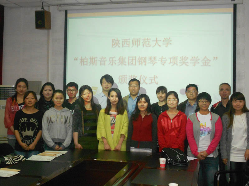 “柏斯音乐集团钢琴专项奖学金”是柏斯音乐集团在我校设立的专项奖学金,旨在切实贯彻柏斯音乐集团“推广音乐文化,培育音乐人才”的企业理念,从2012年起柏斯音乐集团每年向陕西师范大学提供一万元的“钢琴专项奖学金”连续提供五年。