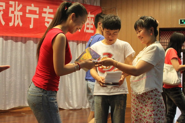讲座后,张宁老师赠予现场师生个人专辑CD,同时预祝同学们在舞台表演上都取得好的成绩,同学们激动不已。