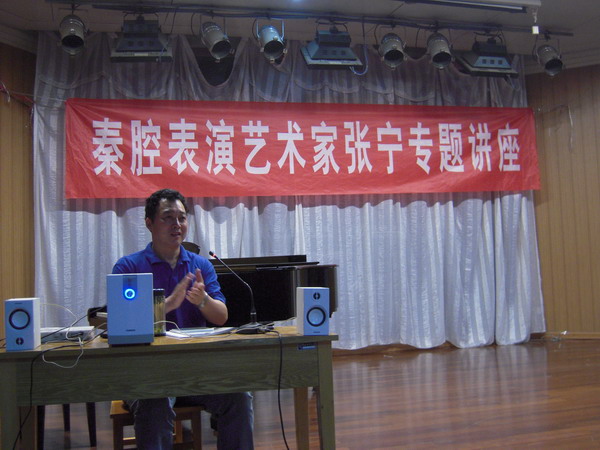 6月8日上午,陕西省戏曲研究院著名秦腔表演艺术家张宁受邀为新葡京声乐专业研究生作了题为《舞台表演艺术》的学术报告。报告由副院长张向侠主持。学院党总支书记秦汉民、声乐副教授王雅娟、钢琴副教授张新梅、办公室主任李亚云以及声乐专业研究生、音乐表演和音乐教育专业本科生200多人聆听了报告。