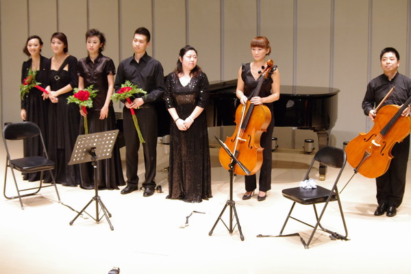 2011年10月16日由新葡京青年教师荆嫄指导的“大提琴的天空下------大提琴重奏音乐会” 在曲江西安音乐厅室内乐厅成功举行。
