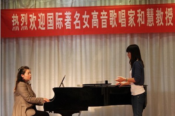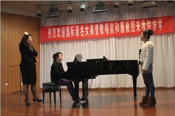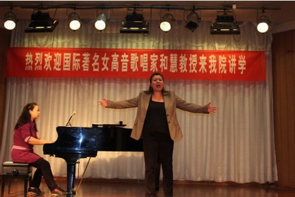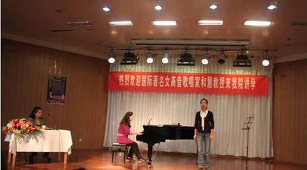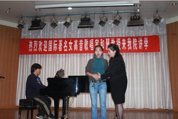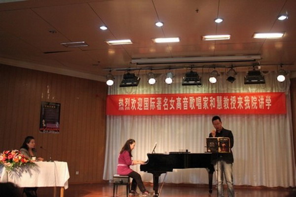 在整个的讲学过程中,和慧教授没有片刻休息,对各位师生的演唱,做了细致耐心的指点,处处体现了她对艺术的不懈追求与精益求精的精神,她所讲的关于声乐艺术的处理深入浅出、细致巧妙,使在场的师生受益匪浅。在10月21日的公开课中,和慧教授除了对青年教师及研究生进行公开课外,还现场解答了师生们提出的各类声乐问题,解决了师生在教学与演唱中的疑惑问题。我们期待着这位用心灵歌唱的艺术家在艺术之路上不断取得丰硕的成果!