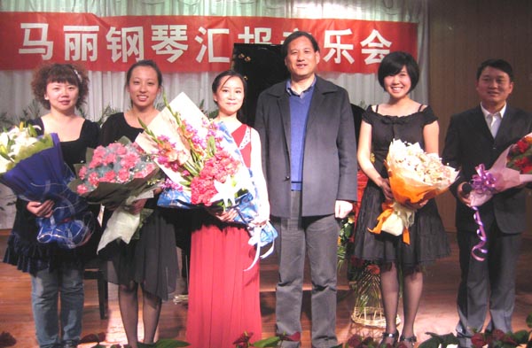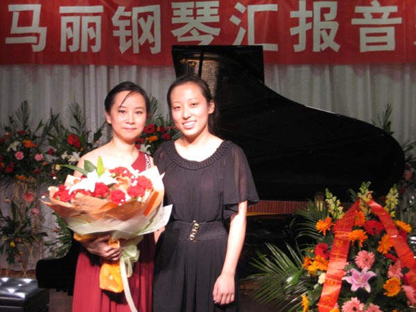 最后马丽老师和她的学生陈慰(07级钢琴表演专业)以舒伯特的一曲四手联弹作品《军队进行曲》为音乐会画上了完美的句号。