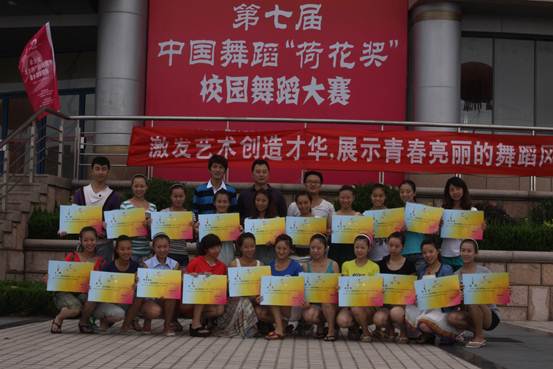 由中国文联、青岛市人民政府主办,中国舞蹈家协会与青岛市文化广电新闻出版局承办的第七届中国舞蹈“荷花奖”校园舞大赛于7月20日—27日在帆船之都、山东青岛市隆重举行。中国舞蹈“荷花奖”是1996年经中宣部立项批准的国家级常设性舞蹈界专业艺术奖项,该奖与戏剧梅花奖、电影金鸡百花奖、电视剧飞天奖、音乐金钟奖、在同一级别,被称为中国舞蹈界最具权威性的专家奖,享有中国舞蹈艺术的崇高美誉。2008年,中国舞蹈“荷花奖”首次设立“校园舞蹈大赛”,两年一届,以鼓励校园舞蹈创作、繁荣校园舞蹈艺术、开拓校园舞蹈事业为宗旨,面向全国学校开展比赛。