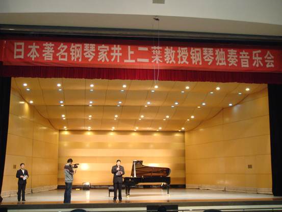 18日晚7点整,日本钢琴演奏家、钢琴教育家井上二叶教授钢琴独奏音乐会在终南音乐厅隆重举行。我校副校长张建祥教授、人事处处长马进福老师、数学与信息科学学院党总支书记李会田老师、3003新葡官方网站院长田大成老师、3003新葡官方网站党总支书记秦汉民老师、学生处副处长刘建军老师、3003新葡官方网站副院长梁玉奇、程鹏民老师和来自西安3003新葡官方网站、西安石油大学及我校的近千名师生观看了音乐会。