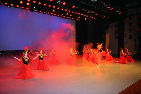 晚会在热情欢快的民族舞蹈《旋、旋、旋》中拉开了帷幕,双人舞《出走》《同窗》表现了莘莘学子求学的辛力路程,独舞《情逝》《香妃戎装像》《家、梅表姐》《青蛇》是根据电视剧或历史故事改编的舞蹈,同学们扎实的基本功、精彩的表演赢得了晚会现场阵阵掌声,一曲优美的傣族三人舞《邵多丽》之后,晚会在群舞《唐古拉风》欢快的旋律落下了帷幕。