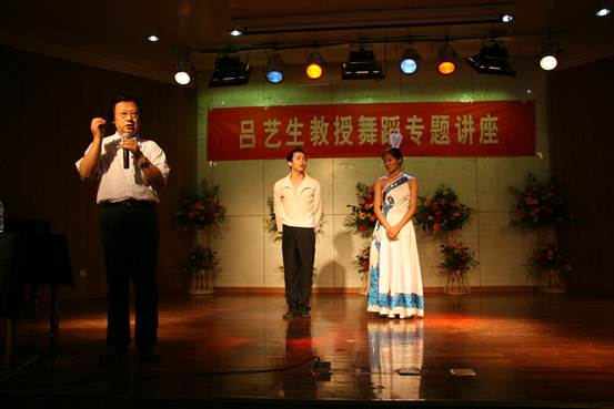 田大成院长首先代表学院对吕艺生教授的来访表示热烈欢迎。讲座期间,学生积极回答吕教授的提问,现场气氛活跃。北京舞蹈学院青年教师和学生表演的舞蹈将讲座推向了高潮,他们扎实的基本功、精彩的表演赢得了现场阵阵掌声。吕教授就针对舞蹈教育,传播以及我国舞蹈发展存在的问题,艺术教育在教育中的重要性等方面进行了重点的讲解,同时要求广大师生要重视舞蹈教育的普及和发展使广大师生受益匪浅。