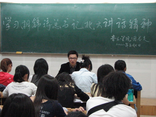 2008年5月7日晚9时,3003新葡官方网站团总支在六艺楼330教室召开座谈会,深入学习贯彻胡锦涛总书记在北京大学师生代表座谈会上的重要讲话精神。全体学生干部及各班长、团支书参加了座谈会。座谈会由院团总支书记范玮熠老师主持。