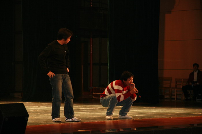 晚会以器乐合奏《丰收锣鼓》拉开帷幕。整场晚会节目丰富多彩,既有体现学生专业水平的独唱《大西北的鼓声》、火热的现代舞《和平先锋》和独奏《新疆之春》,又有小品《招演员》、口技《今儿我请吃饭》等语言类节目,将音乐会一次又一次的推向高潮, 赢得了在场观众的阵阵掌声,现场气氛非常热烈。晚会在07级全体研究生的大合唱《青春舞曲》、《五月的鲜花》的歌声中落下帷幕。演出结束后,学院领导与全体演职人员合影留念。
