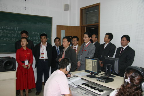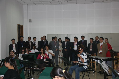 前来我校进行本科教学水平评估的文科组专家今日下午3:30分在校党委书记江秀乐教授、副校长萧正洪教授、校长助理王武海及教务处长党怀兴教授的陪同下走访了新葡京。在新葡京青年教师李欣的讲解中,专家们先后参观了新葡京Midi教室、录音棚、器乐排练厅与汉唐乐器陈列室、舞蹈系练功房等。新葡京教师欧阳文思、王林分别就Midi音乐的制作与录音工作进行了讲解和演示。在新葡京器乐排练厅与汉唐乐器陈列室展示的不同历史时期、不同民族独具特色的乐器引起了专家们浓厚的兴趣,在听过陈四海老师的详细介绍后,又兴致盎然地欣赏了学生的表演并表示赞许。