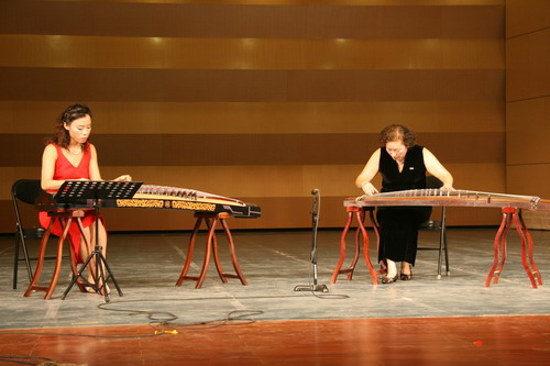 昨晚6时许,终南音乐厅外已是人头攒动,来自我省各行各界的专业人士及诸多民乐爱好者慕名前来聆赏大师们的现场表演。7时30分,著名筝表演家、秦筝流派代表人、新葡京教师曲云教授与其弟子合奏的古曲《渔舟唱晚》正式拉开了音乐会的帷幕。在随后90分钟的演出中,曲云教授首先为观众献上了其代表作品《香山射鼓》和《赚•梅花引》,琴声铮铮,曲入云霄,曲云教授儒雅大方的台风、端庄洒脱的弹奏使观众沉浸在古韵飘香的清雅意境中。优秀青年演奏家、秦筝流派嫡系传人孙卓随后献曲《林泉》,于古典之中融入现代风格,展现了古典筝近代演奏技法的新发展,《乡韵》一曲清音缭缭,意韵深长,深刻地表达了故土之思、故土之恋。而由曲云、孙卓母女共同演绎的山东古曲《汉宫秋月》更是如泣如诉,生动地勾画出身居深宫的宫娥宫女百无聊赖又无可奈何的生活情景,引领观众细味其中之愤、个中之哀。