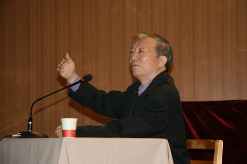 刘德海先生不仅是我国琵琶界享有盛誉的演奏家,也是著名的教育家。整个下午的报告会中,刘德海先生以满腔的激情为听众营造着一个轻松却又不失严肃的艺术课堂;听众们聚精会神,以对艺术的热诚追求感受着先生展示的艺术精神,报告厅内时时传出阵阵笑声、掌声。刘德海先生首先表达了他对师范类院校的深厚感情,然后就琵琶演奏、音乐表演、审美风格与文化交流等诸多方面的问题与来自新葡京与西安3003新葡官方网站等院校的师生展开对话,学生们活跃的思维、踊跃的发言以及深刻的思考能力得到了刘先生的高度赞扬。