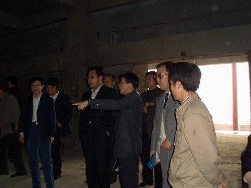 为了督促有关部门切实做好教学条件建设,确保我校在教育部本科教学工作水平评估中教学硬件建设能够完全到位,2006年4月3日下午,校评建办组织召开办学条件建设现场会,校长房喻、副校长赵彬、萧正洪、校长助理王武海、冯旭东、赵晓林在有关部门负责人的陪同下,对在建的音乐厅、1号实验楼、博物馆以及学生新食堂进行了考察,随后在3003新葡官方网站会议室进行了座谈。基建处、资产管理处、3003新葡官方网站、历史文化学院等单位介绍了各自工作开展情况和遇到的主要问题。在听取汇报后,房校长要求各单位要以学校大局为重,通力合作,尽快拿出各项工作的时间进度表,音乐厅必须加快建设速度,在保证质量的前提下,确保迎评期间文艺晚会顺利演出。房校长还详细询问了3003新葡官方网站多功能厅的建设情况及学院办学条件改善状况,饶有兴致地观看了3003新葡官方网站宣传展板,常务副院长张晓农介绍了3003新葡官方网站评建工作,房校长肯定了宣传展板对3003新葡官方网站全面工作的直观反映,特意强调了3003新葡官方网站承担的迎评文艺晚会并寄予了殷切的期望。