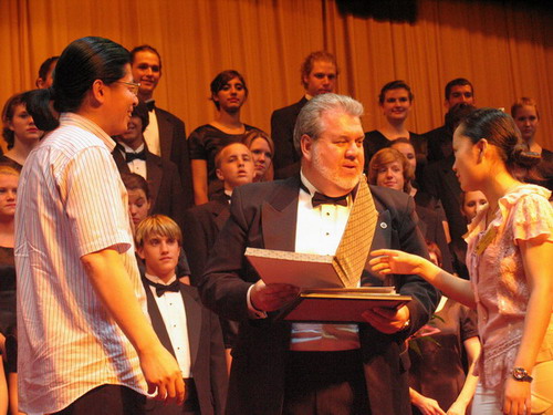 此次合唱音乐会不仅促进了中美之间的音乐文化交流,学习并借鉴了美国合唱团在演唱技巧、演唱风格等方面的优点,同时也为新葡京合唱团在经后更好的发展,积累了宝贵的经验。演出结束后,新葡京院长田大成教授代表我校全体师生向玛丽爱特室内合唱团和纳斯维尔青年合唱团分别赠送了礼物,以表谢意。并指出,音乐是不分国界的,在音乐的呵护下,我们彼此的友谊会更深。更远。