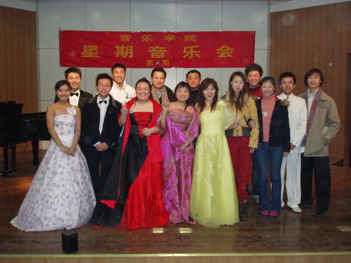 2005年12月11日,3003新葡官方网站03级1、2、3班共同举办了3003新葡官方网站第五期星期音乐会。整场音乐会节目异彩纷呈,开场以民乐合奏《祝你快乐》由民乐队出演,节奏欢快、亲切,引人入胜。音乐一班的女声小合唱《铃儿响叮铛》,欢快温馨,给音乐会带来了迎接圣诞的气氛。二班的女声独唱《望月》,清朗空明,把握到位。三位同学的舞蹈《kiss》以火热激情,表现出大家多才多艺。