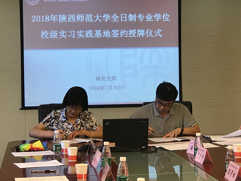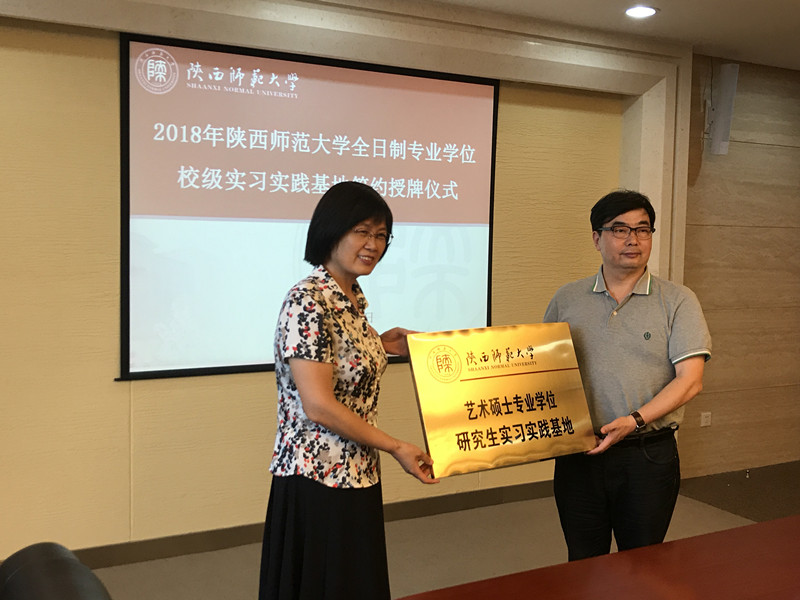 2018年7月10日下午,新葡京张新梅副院长、科研秘书石黎明和陕西省歌舞剧院院长张效敏、陕西省歌舞剧院民乐团团长党红岩一同参加了在陕西师范大学文汇楼会议室举行的全日制专业学位硕士研究生校级实习实践基地签约授牌仪式。仪式由研究生院副院长王明道主持,研究生院院长郑海荣、副院长韩胜伟出席。此次我校共有5个培养单位参加授牌。韩胜伟副院长首先宣读《陕西师范大学全日制专业学位硕士研究生校级实习实践基地的通知文件》,郑海荣院长与各基地负责人进行签约并合影留念。