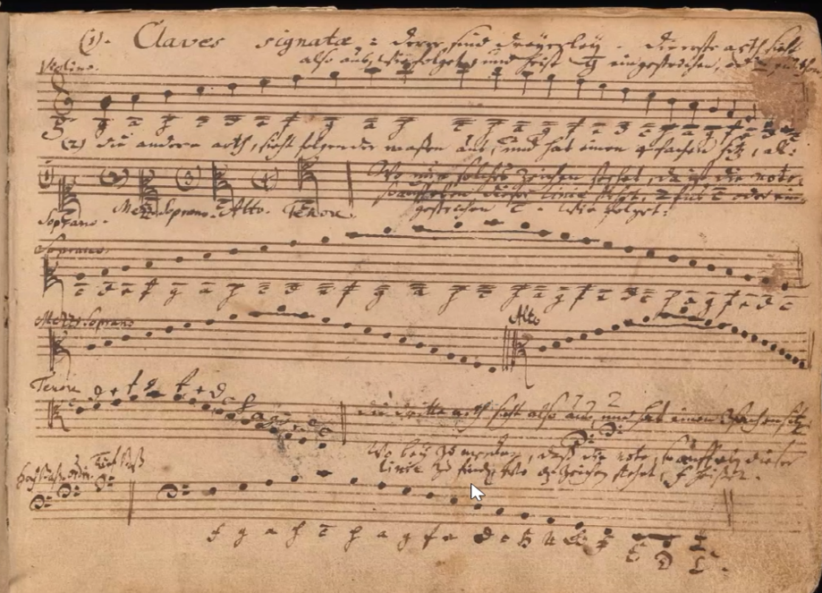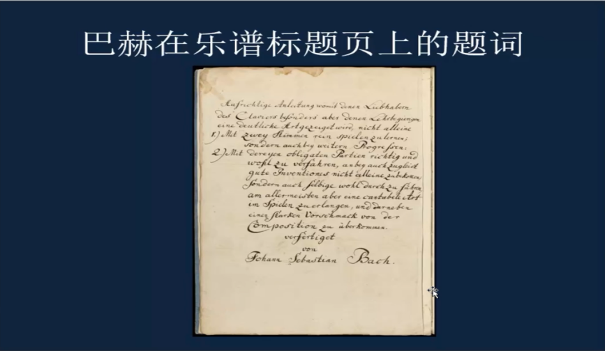 再次,余老师详细追溯了这部作品的创作过程。最初,这部作品巴赫在科滕创作的,1723年又重新抄写这部作品,1720年的《键盘小曲集》里也同样收录了巴赫的创意曲,被称为创意曲的早期版本。余老师还对早期版本与后来的誊抄版进行比较。两种版本在调的排序上有所差异,在乐句的处理上也有所改变。之后余老师对两种版本作品的调的排序进行详细的说明,在说明调性排序的同时也说明巴赫创作的规律性,且展示《键盘小曲集》的手稿。