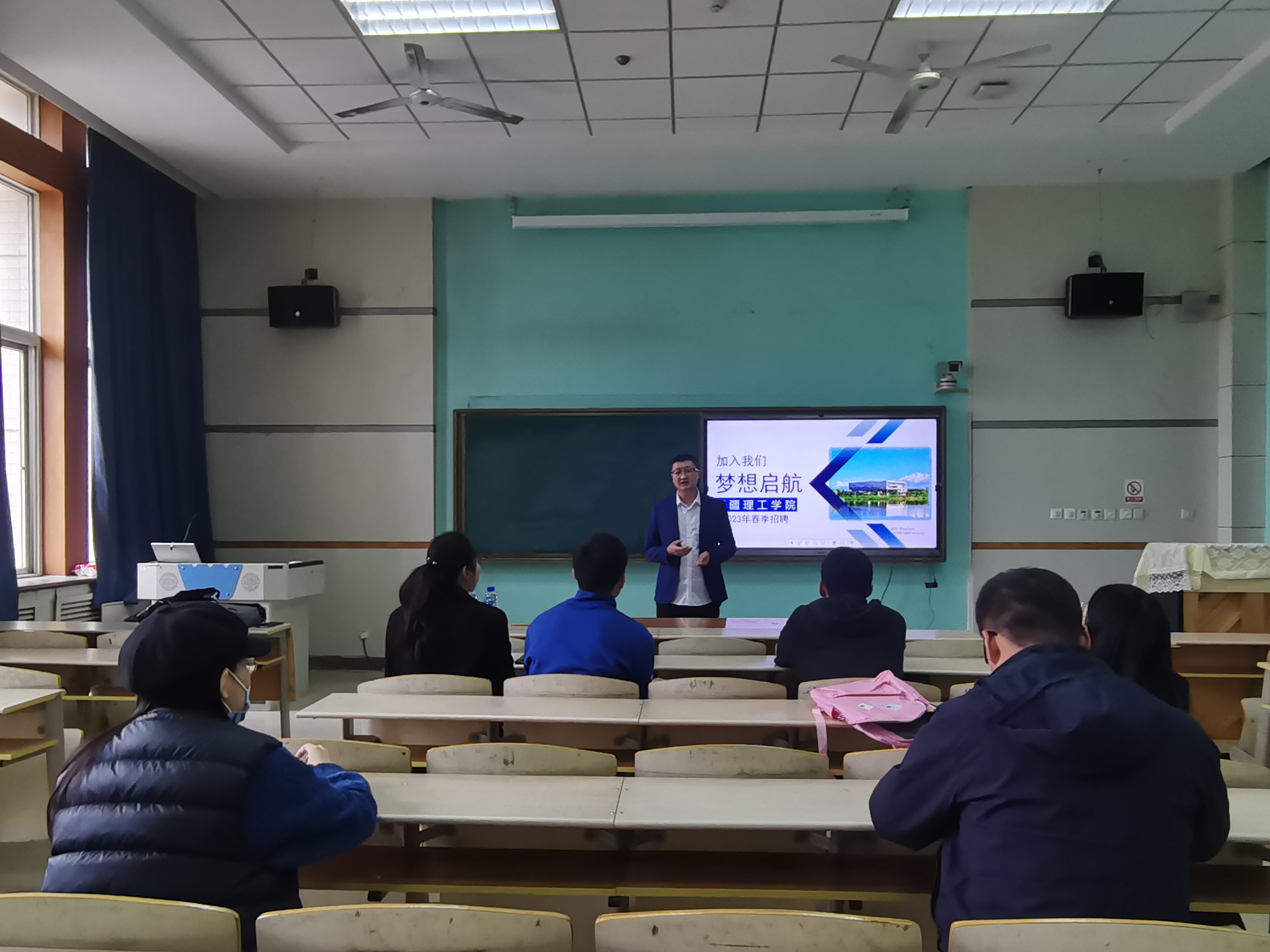 4月4日,新疆理工学院一行到3003新葡官方网站开展线下宣讲招聘会,活动在六艺楼535教室开展。3003新葡官方网站辅导员刘宝瑞参与会议,3003新葡官方网站和体育学院部分2023届硕士毕业生参与本次宣讲招聘会。会议由新疆理工学院王永强主持。