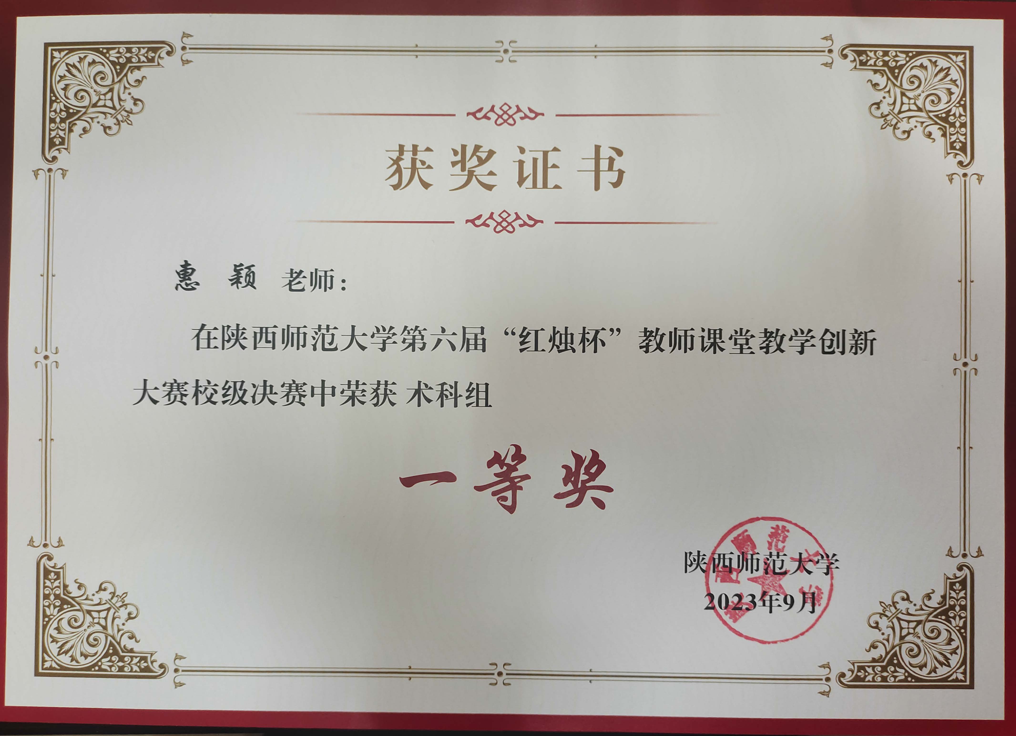 9月23日,陕西师范大学第六届“红烛杯”教师课堂教学创新大赛校级决赛在长安校区落下帷幕,新葡京教师惠颖获术科组一等奖、王爽获术科组二等奖,学院获优秀组织奖。