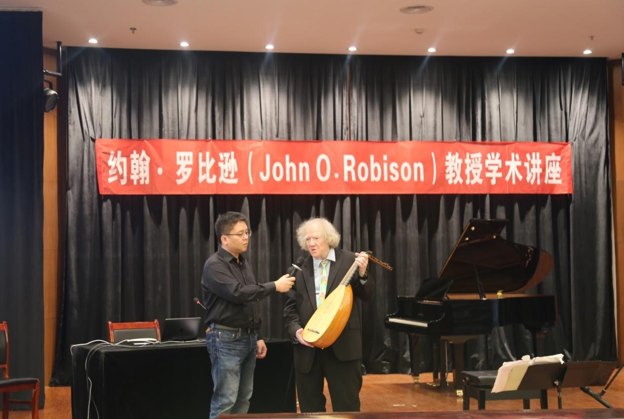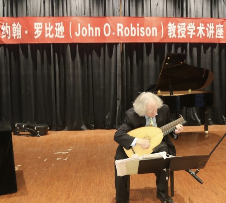 9月15日,美国南佛罗里达大学终身教授约翰·罗比逊为新葡京师生作了题为《文艺复兴时期的鲁特琴及相关音乐研究》的学术讲座。讲座由器乐系詹静漪副教授主持,钢琴系那皓涵教授担任现场翻译。