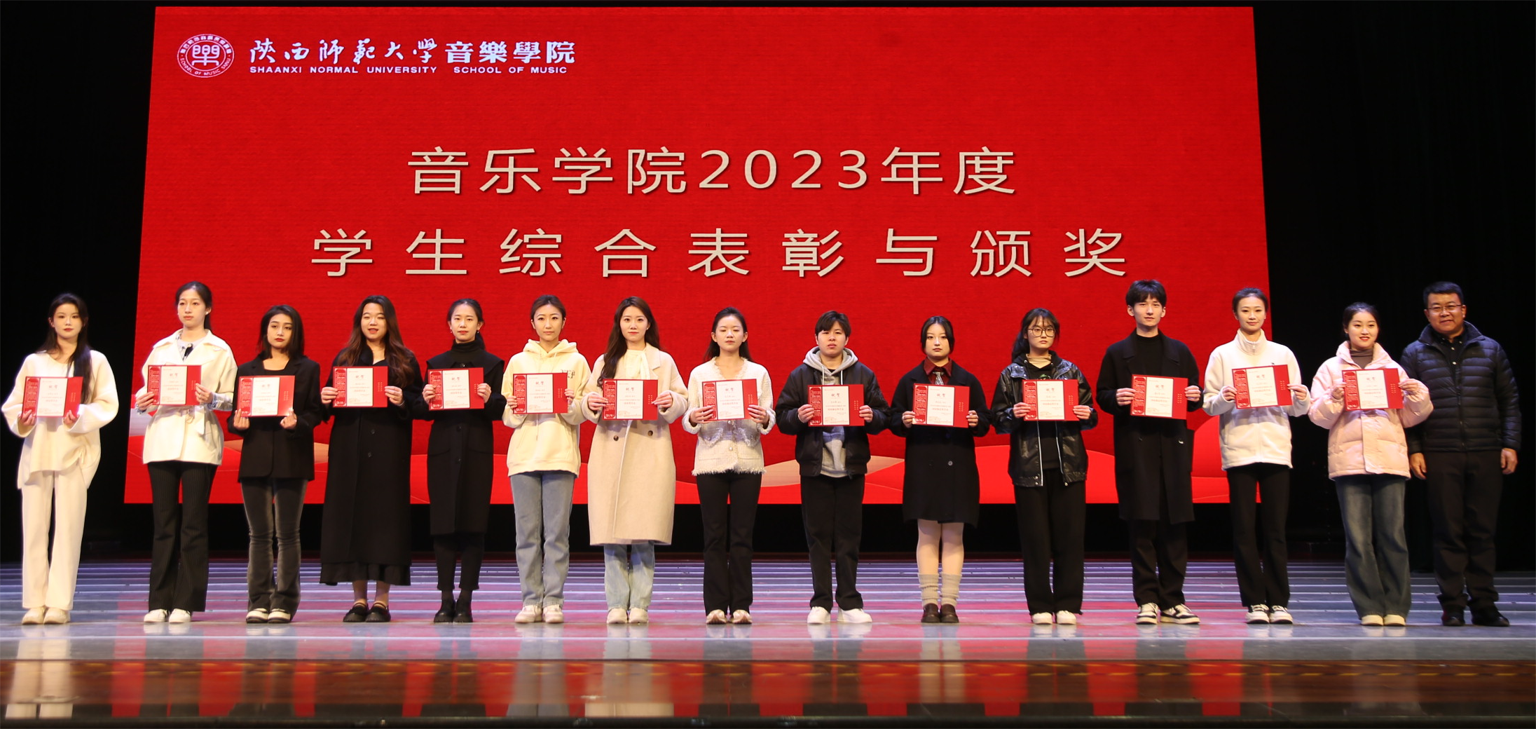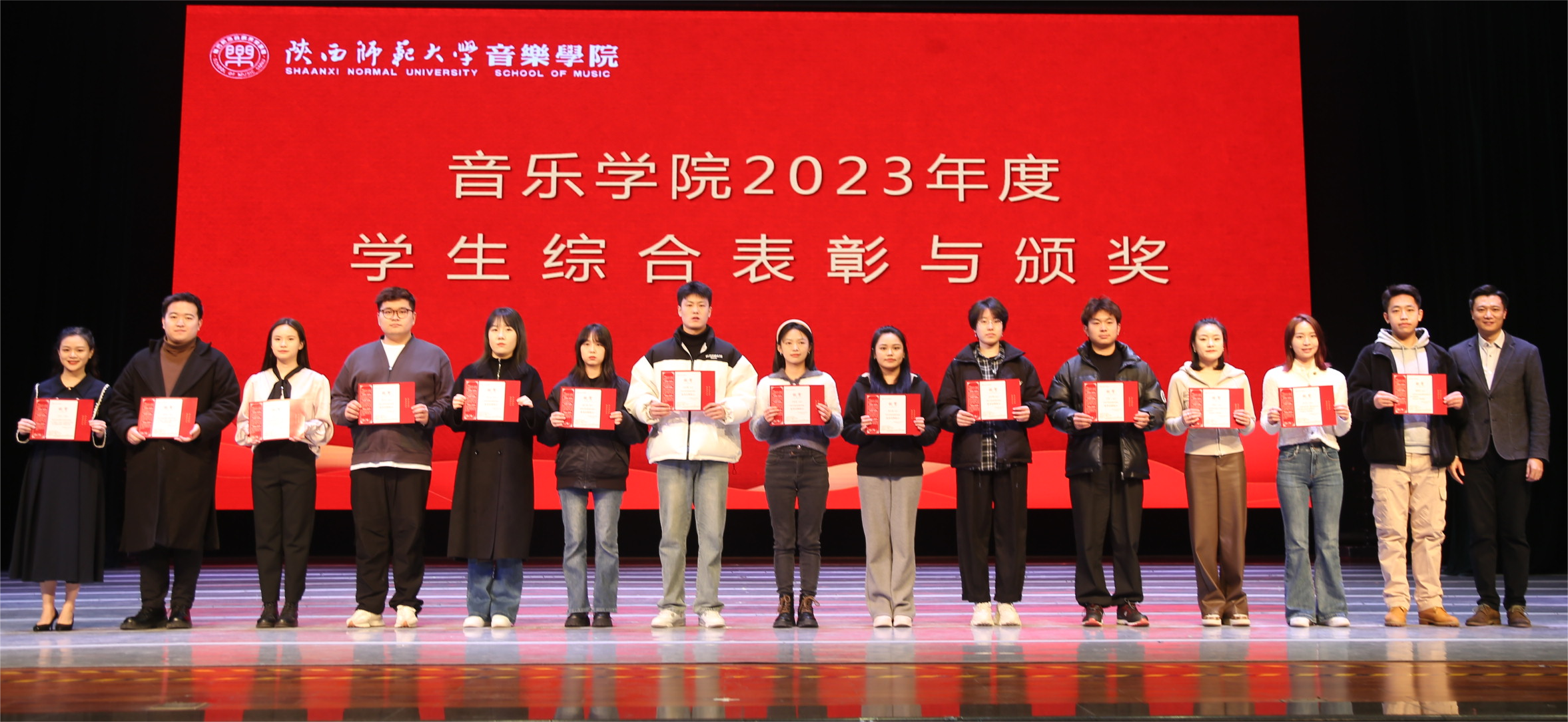 3月10日晚,新葡京“黄钟大吕灼芳华 以知促行铸学风”2023年度学生综合表彰大会暨学风建设季启动仪式在终南音乐厅举行。党委书记范玮熠、院长黄键、副院长张娟、韩晓勇、张新梅、郭元以及学院各系主任、班主任代表、导师代表参加此次大会。大会共分九项议程,会议由宋娜主持。