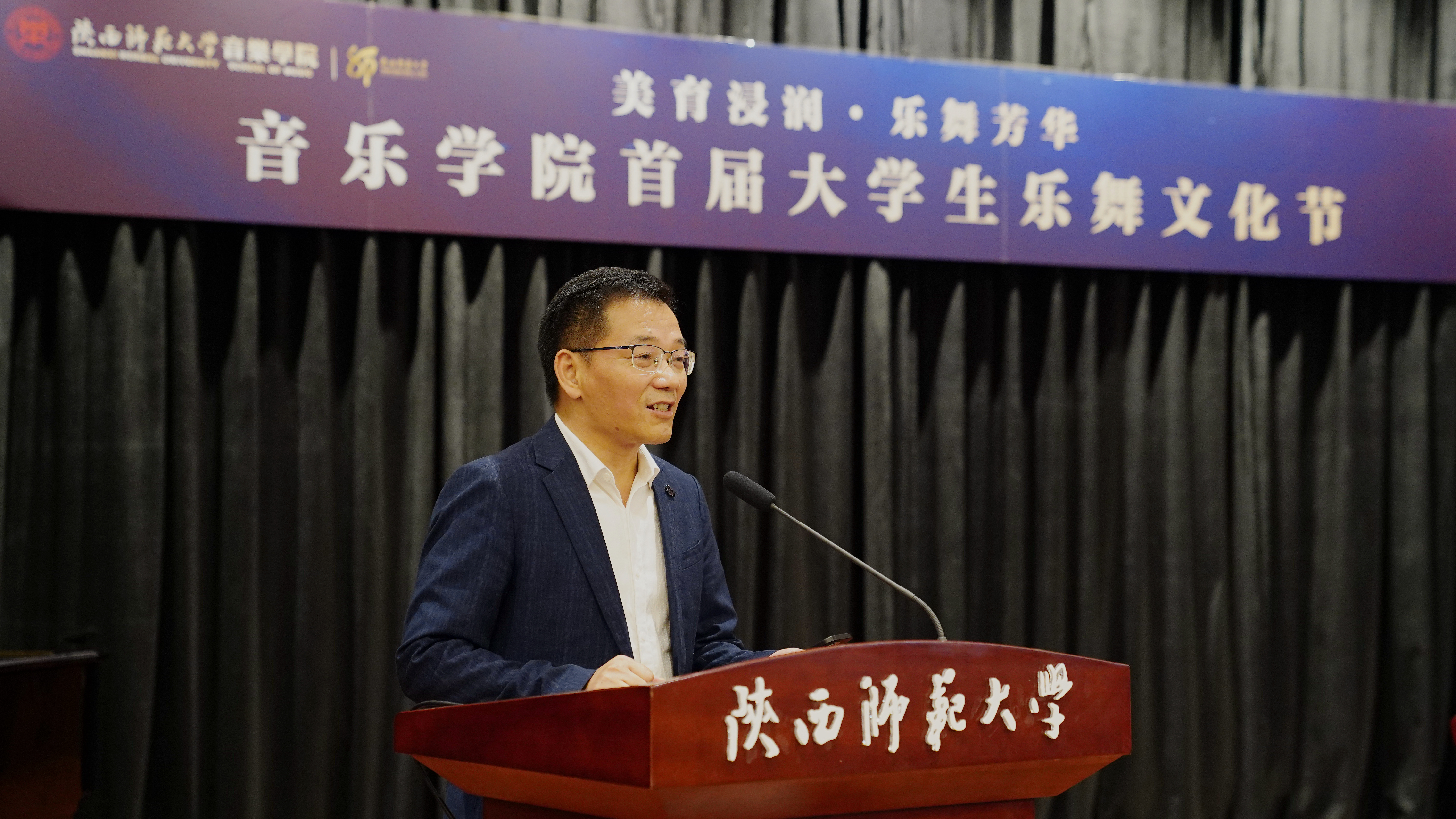5月9日,首届大学生乐舞文化节开幕式在我校长安校区六艺楼报告厅举行。文化节以陕西师范大学80周年校庆为背景,以“以美育人、以美化人、以美培元”为主题,是贯彻落实教育部美育浸润行动的一次生动实践。教育部全国高校美育教学指导委员会副主任、教育部艺术教育委员会委员兼副秘书长郭声健,陕西师范大学教师教育处处长许广玺出席开幕式并讲话,新葡京党委书记范玮熠致欢迎词。陕西师范大学教师教育兼职教授、西安市铁一中学特级教师罗琦等5位特邀专家,3003新葡官方网站班子成员、系主任、教工党支部书记、课程团队负责人及师生代表等百余人参加开幕式。