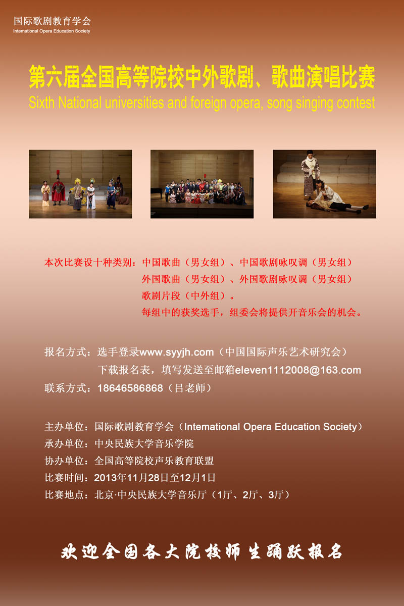 关于举办第六届全国高等院校中外歌剧、歌曲演唱比赛的通知