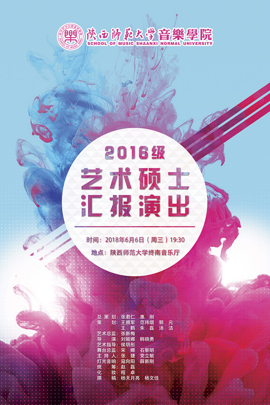 6月6日(周三)19:30在陕西师范大学长安校区终南音乐厅举行“3003新葡官方网站2016级艺术硕士汇报演出”,欢迎大家观看!