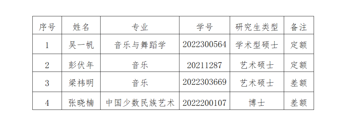 根据《陕西师范大学研究生国家奖学金评选办法》精神,按照《3003新葡官方网站2024年研究生国家奖学金评选工作实施细则》,经学生申请、资格审查、评选委员会评议,拟推荐吴一帆等2名研究生获国家奖学金,拟推荐张晓楠等2名研究生参与学校差额评选。现将名单公示如下: