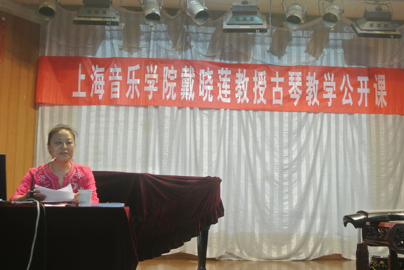 本次讲座在陕西师范大学长安校区六艺楼报告厅举行,首先,张向侠副院长发表了致辞和讲话。讲座由民乐系林蔚丽老师主持。戴晓莲教授从古琴专业学院教育的历史讲起,她向我们介绍了她的新作品《归去来兮辞》四重奏和《古舞》钢琴、古琴二重奏的音乐会视频,并现场演奏了《平沙落雁》,《洞庭秋思》两首曲目,带给了我们全新的感受。她的演奏功力深厚,技艺娴熟,大气磅礴,见微见著,加上戴老师她的学者风范和人格魅力,强烈地感染了在座的师生和琴友们。并且都为她不断探索和开拓古琴音乐的新发展方向的精神深深感动,不愧是中国古琴艺术新一代的代表人物。