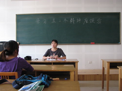 座谈会上,惠颖老师为同学们介绍了孟二冬教授的生平及先进事迹,学习了胡锦涛总书记给孟二冬教授女儿的回信。通过学习大家被孟二冬教授的先进事迹深深打动。大家从孟二冬教授身上看到了优秀教师应当具备的精神,那就是严谨治学,爱岗敬业;通过学习胡锦涛总书记给孟二冬教授女儿的回信,大家认识到作为教师队伍中的生力军,我们要像孟二冬老师学习,以成为优秀的人民教师为奋斗目标,爱岗敬业,不断进取,满腔热情地投入到工作中去,把自己的一片爱心奉献给学生,真诚的为每一位学生的成长服务。