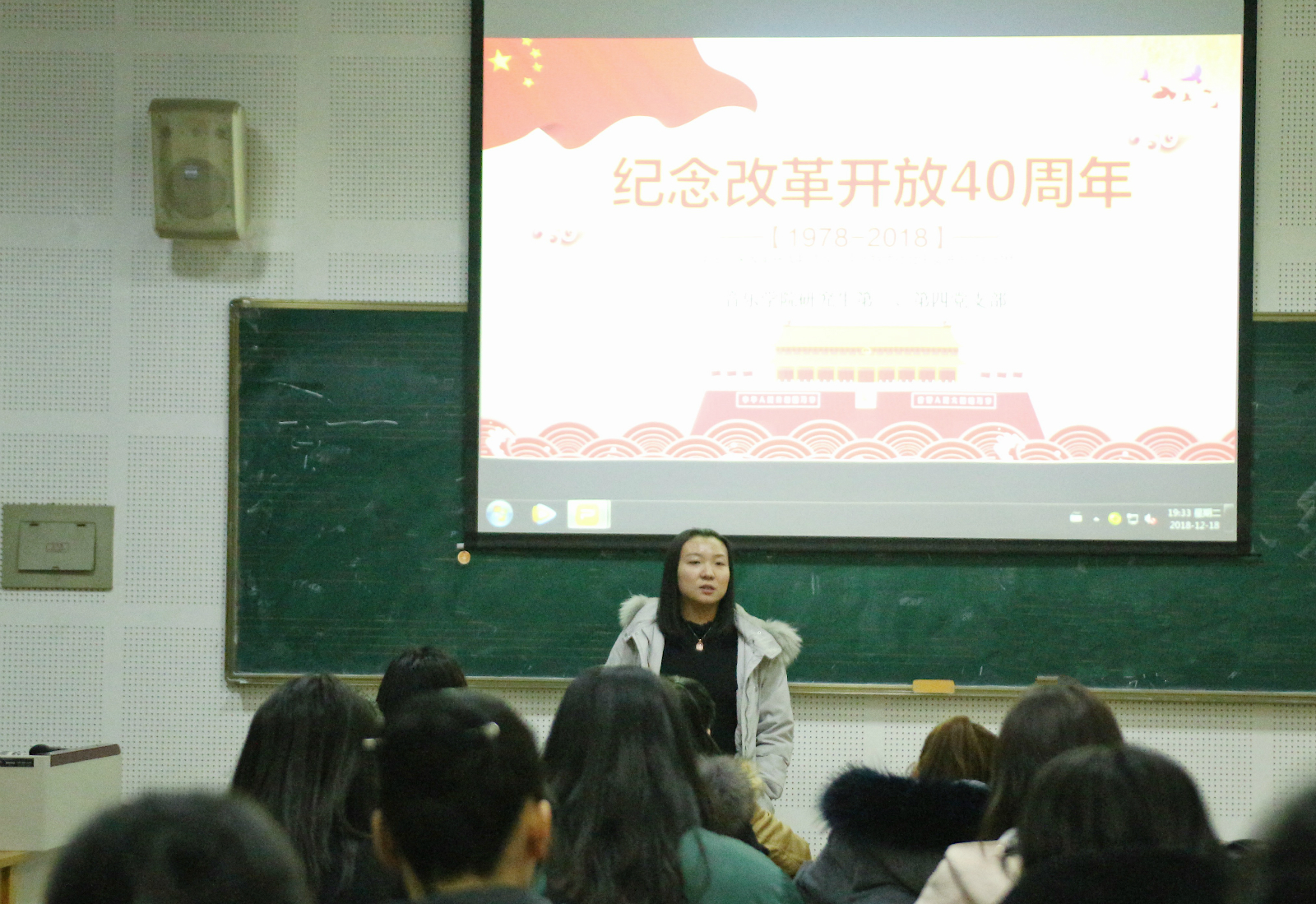 2018年12月18日晚19:00,在3003新葡官方网站338教室召开学习习近平总书记庆祝改革开放40周年大会重要讲话精神,致敬改革开放四十周年学习交流会,研究生辅导员、研究生第四党支部书记王靖雯老师,研究生第三党支部书记洪艺华,以及3003新葡官方网站第三、第四研究生党支部全体党员及积极分子参加了此次座谈会。