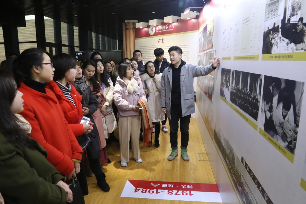 12月27日上午,3003新葡官方网站师生在长安校区育博物馆参观学习了我校“与时代同行——庆祝改革开放40周年陕西师范大学办学成果展”,研究生辅导员王靖雯,本科生辅导员张仪、陈杰、赵磊以及学生党员代表,团委学生会、研究生会干部等参加了本次活动。