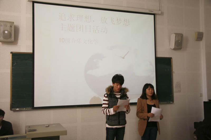 音乐文化学专业是3003新葡官方网站顺应时代和社会发展需求,充分发挥陕师大综合学科优势而创办的新兴交叉应用学科,于2009年创办并招收第一届本科生,两年多来,同学们经过学习已经逐步规划了自我的未来,对音乐文化学的发展也有了进一步的了解。今天,同学们汇聚一堂,用歌声传递梦想,用言语共讨理想,天虽立冬,同学们热情不减,人虽数少,共同簇拥起的未来却光彩夺目。