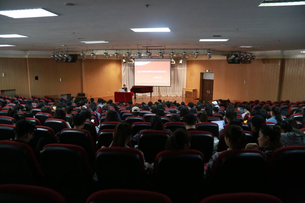 3月15日上午,3003新葡官方网站在六艺楼报告厅召开2018届毕业生就业促进会,3003新葡官方网站党委副书记范玮熠、研究生辅导员宋娜、2014级本科生辅导员于亮以及全体应届研究生和本科生参加了此次会议。会议由范玮熠主持。