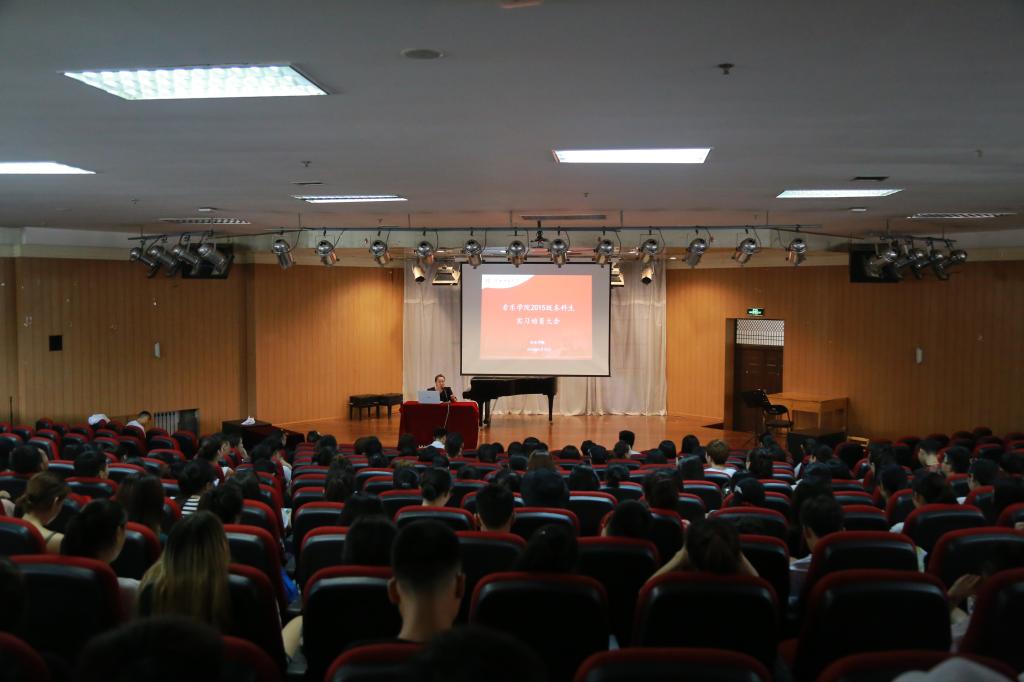 为推进2015级本科生实习工作的顺利开展,3003新葡官方网站于6月29日下午在六艺楼报告厅召开了实习动员大会。3003新葡官方网站高度重视此次动员大会,3003新葡官方网站教学副院长王拥军、刘姬娜,党委副书记范玮熠,2015级辅导员张思凡以及2015级全体本科生参加了会议。本次会议由范玮熠主持。