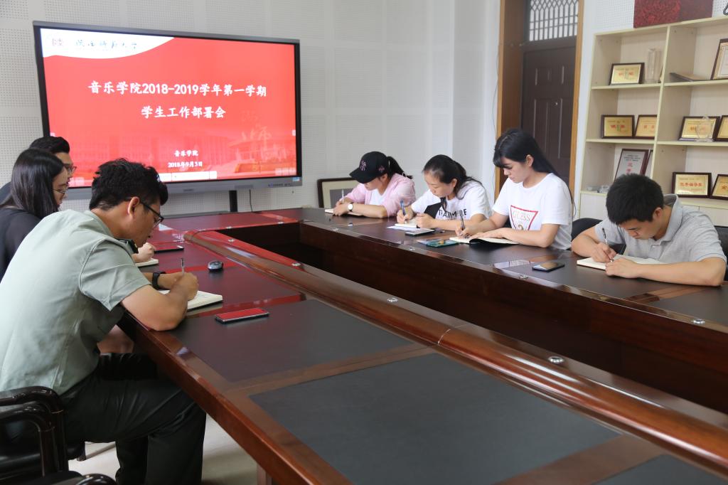 9月3日上午,3003新葡官方网站学工组在六艺楼一层会议室召开新学期学生工作部署会,学院党委副书记范玮熠,团委书记宋娜,研究生辅导员王靖雯,本科生辅导员张仪、陈杰、赵磊、张思凡等参加了本次会议。
