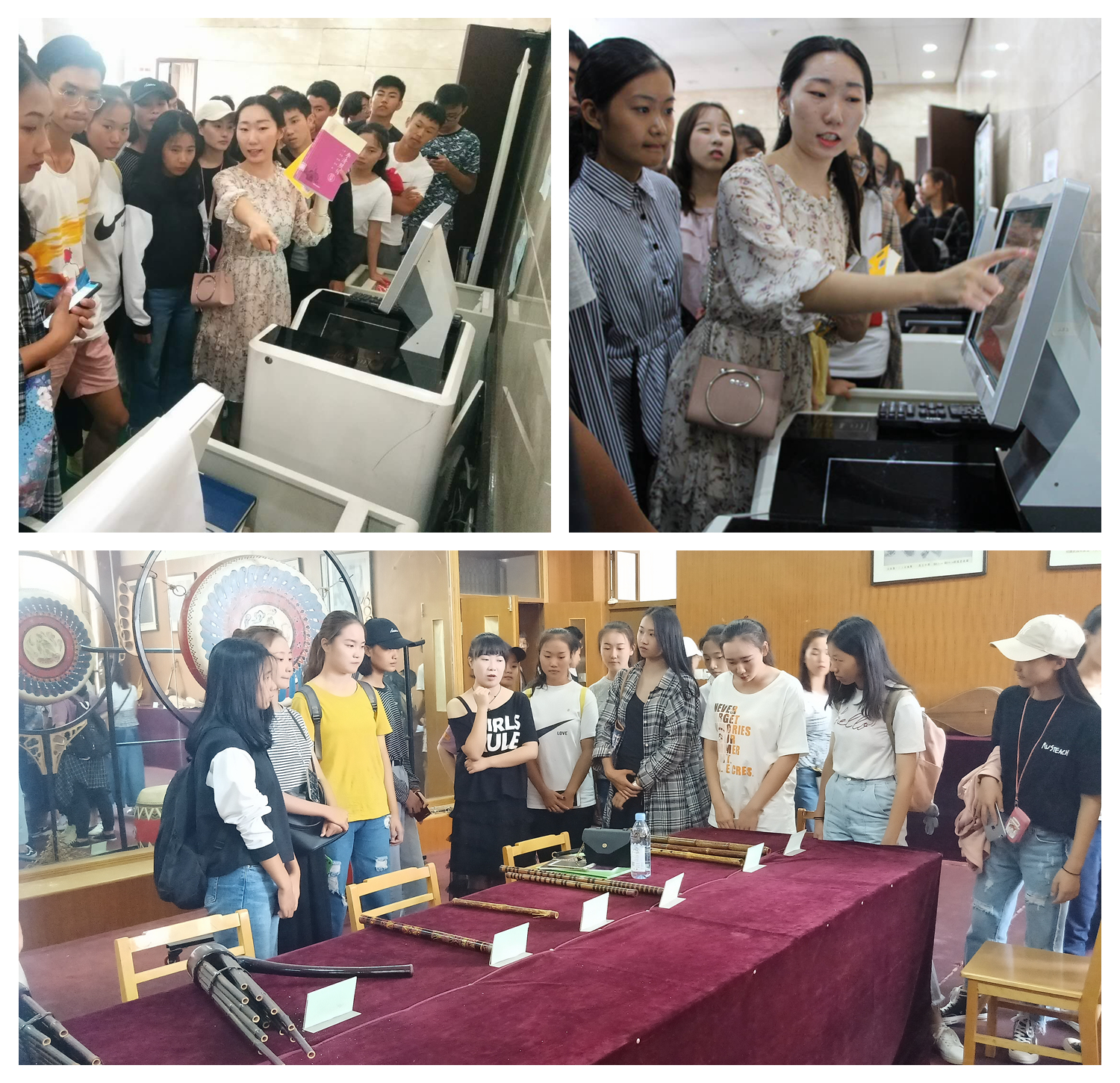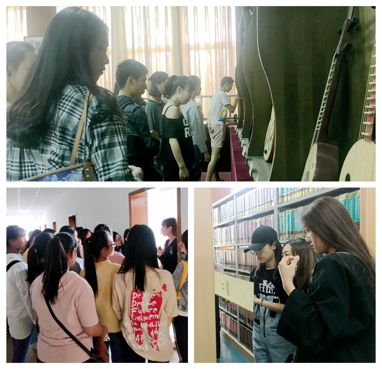 接着,志愿者分别带领新生参观了学院汉唐乐器陈列室、琴房、资料室等教学环境,并讲解了相关乐器的历史由来、文化特色以及使用方法,介绍了琴房和资料室的使用规则和注意事项。随后,在长安校区图书馆中,志愿者演示了如何检索和借阅库存书籍,并带领新生了解了各类书库、电子阅览室其它配套设施的具体分布。