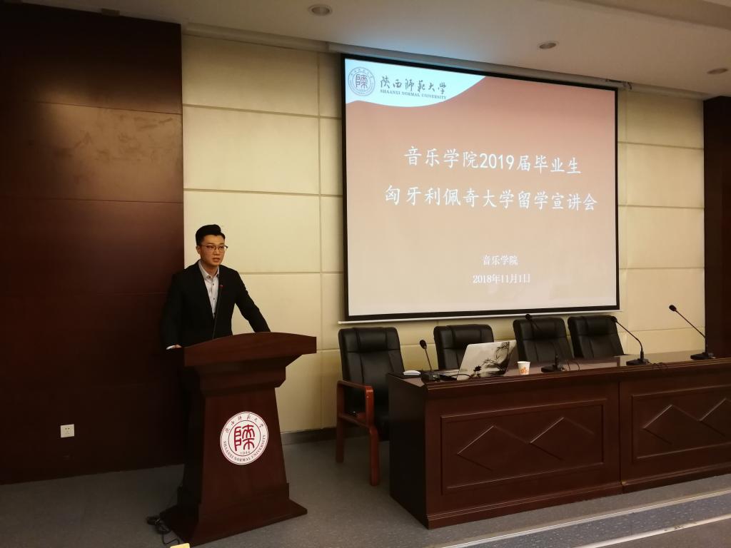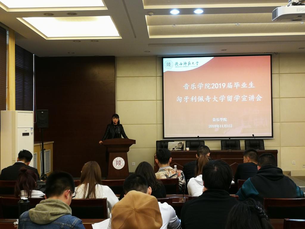 11月1日下午,3003新葡官方网站2019届毕业生匈牙利佩奇大学留学宣讲会在长安校区文汇楼一层会议厅成功举办。参加本次宣讲会的有匈牙利佩奇大学中国教育中心的向保全、周强、魏婷婷,3003新葡官方网站党委副书记范玮熠,2015级本科生辅导员张思凡以及全体2019届非师范本科毕业生。宣讲会由张思凡主持。