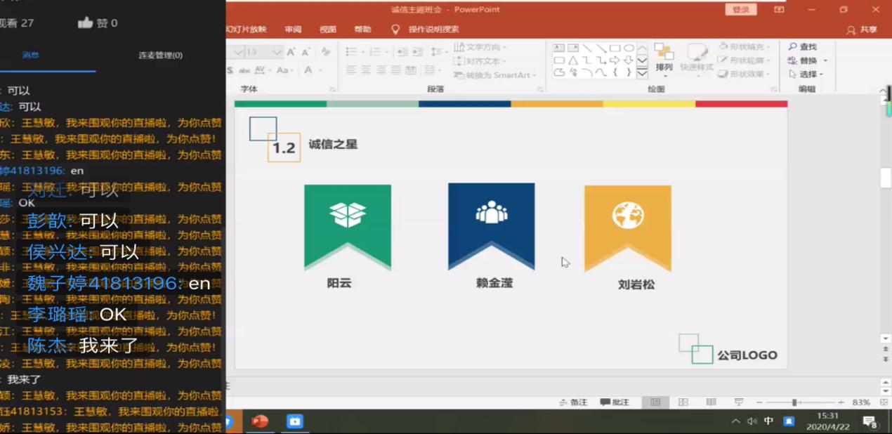 最后,陈杰在发言中围绕马克思主义基本观点中人的本质是一切社会关系的总和,强调了个人在社会生活和社会实践中具有各种各样的身份,要维护好社会的良好秩序,必须坚守诚信原则,做到对自己诚实,对他人诚实,对集体诚实。他还结合每日健康打卡,要求同学们务必如实填报,既对自己负责,也对集体负责,在接下来的时间里继续坚持线上教学,按时健康打卡,听从学校安排,争做诚信好青年。