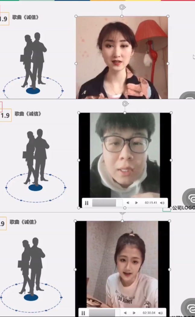 随后,由各班班委组织,同学们认真学习了主题歌曲《诚信》,并通过线上接力方式进行了云演唱,歌词中唱到“人生于世胸怀坦荡,诚信为本一路敞亮”,将诚信教育同专业学习结合在一起,能够帮助同学们更加深刻的理解诚信的深刻内涵。