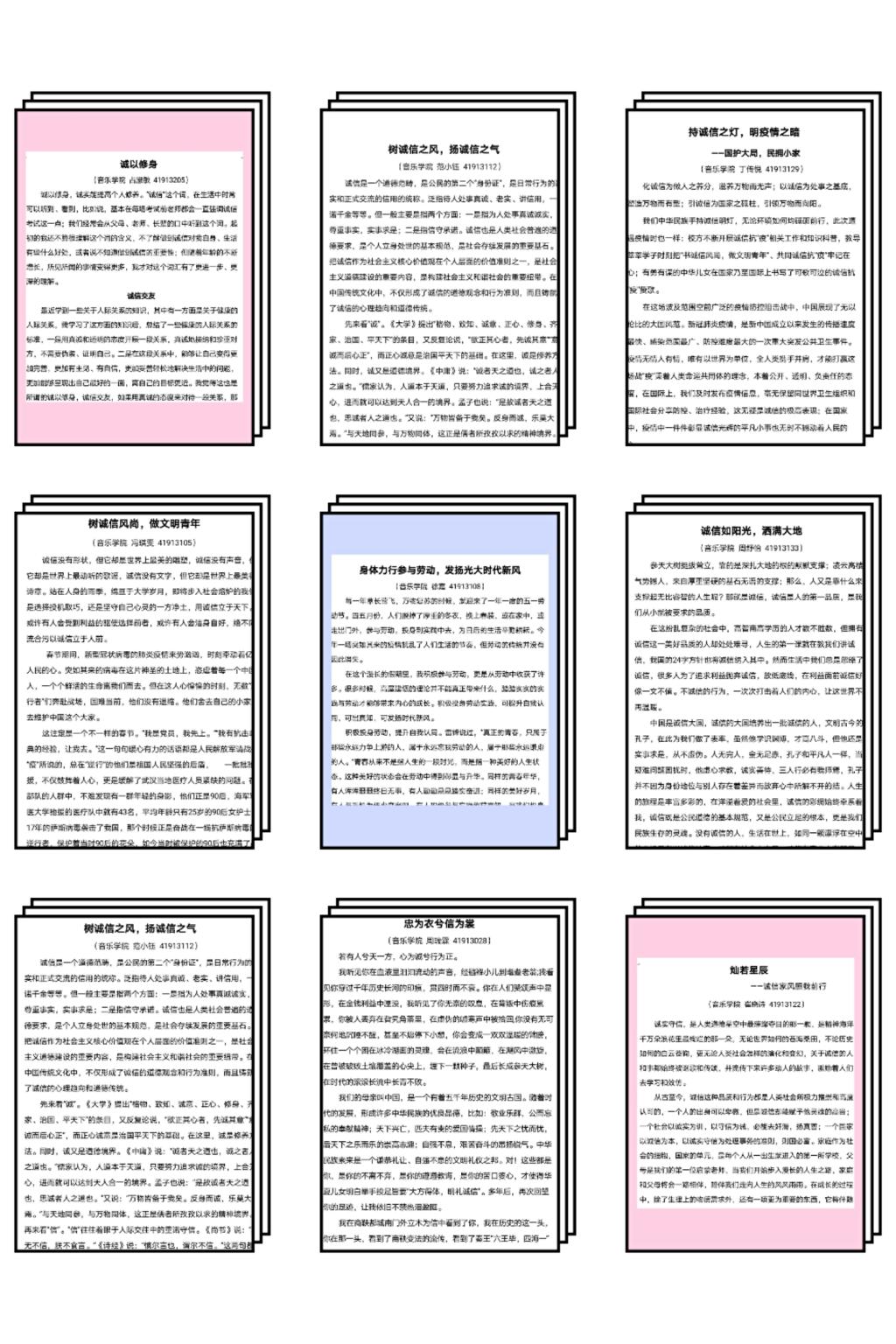 其他班级通过PPT展示、代表发言、讨论互动、观看诚信电影等形式组织开展此次诚信主题班会,同时同学们积极参与到诚信征文、诚信作品创作的系列活动中,用心感悟诚信的重要性,传播守信正能量,做新时代文明青年。