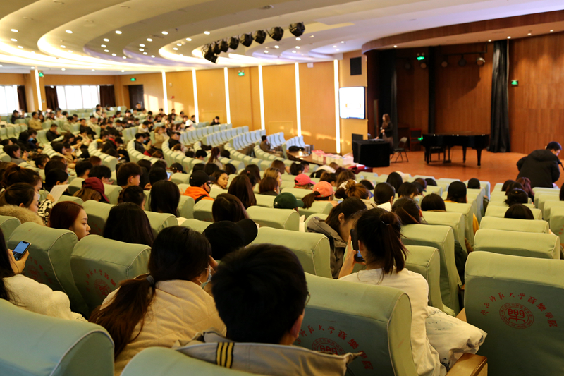 江王强首先分析了目前严峻的就业形势,利用大数据样本向同学们展示了目前及即将面临的就业环境和压力,根据同学们的专业特点罗列了就业行业分布,并以人民音乐出版社、中国交响乐团为例讲解了用人单位的招聘条件。随后,他结合近两年的报考人数、招生体量、报录比例等数据分析了目前的考研形势,并系统讲解了相关专业的异同点和侧重点,向同学们提供了选择填报学校和专业的方法和依据。最后,他鼓励同学们要认清形势,提前筹划,踏实准备,争取为自己创造一个更美好的未来。