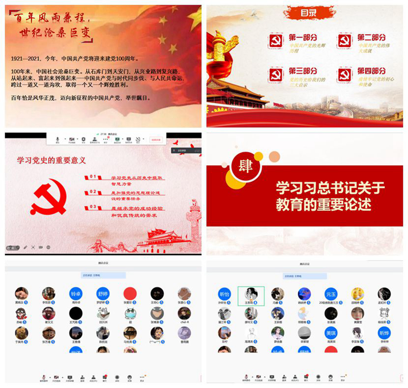 抓好理论学习,喜迎100周年。紧密围绕建党100周年重大节点,在青年学生群体中通过线上云班会等形式开展党史学习教育,引导广大学生学习中国共产党的光辉历程,从历史中汲取智慧和力量,继承党的优良传统和伟大精神,将个人成长和国家发展紧密结合,用青春昂扬的面貌迎接建党100周年。