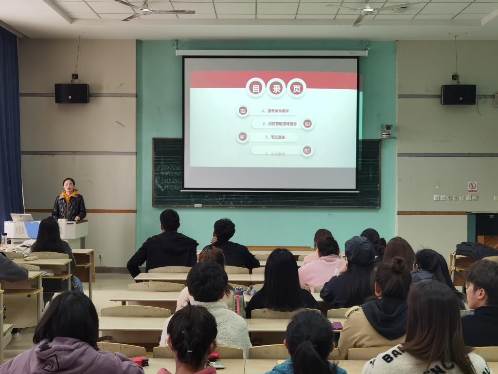 最后,范玮熠进行总结,他结合自身思想政治工作经历,向毕业生阐述了在高校辅导员备考过程中需要注意的几点事项,并提出以下几点要求。一是提高政治站位,巩固理论基础;二是积累备考经验,学会查缺补漏;三是积极调整备考状态,坚定信心。最后,他表示,毕业生要明确就业目标,学会筛选有用信息,善抓重点难点,不断提升自身素养,顺利就业。