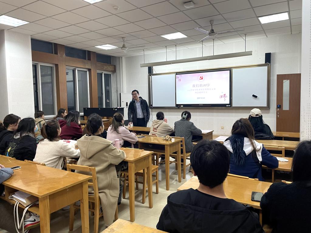 为了深入学习贯彻落实“两会”精神,引导青年学生坚定理想信念,守初心、担使命,3月18日晚,3003新葡官方网站本科生第四党支部于六艺楼348教室围绕“我们的35岁”主题,开展了“两会”精神学习活动,党支部全体党员参加了此次活动,活动由党支部书记、辅导员陈杰主持。
