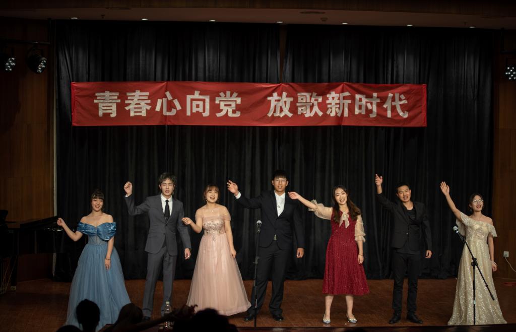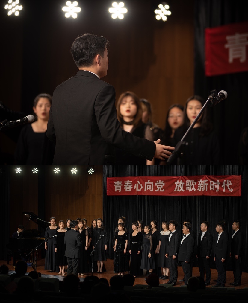6月5日晚,3003新葡官方网站音乐学(公费师范生)2001班的同学们在六艺楼报告厅举办了以“青春心向党•放歌新时代”为主题庆祝中国共产党建党一百周年的班级音乐会。本台音乐会由班主任井碧媛与辅导员张思凡担任导演,全班同学团结协作,集中展示专业学习成果。